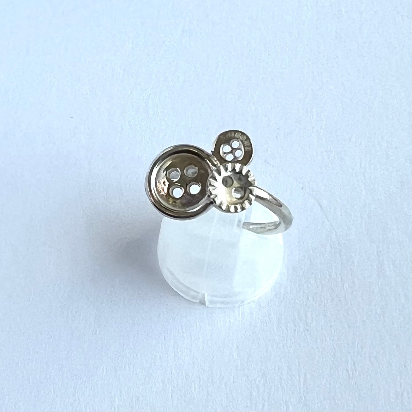 小さな釦を3個重ねたデザインリングに仕立てました。
