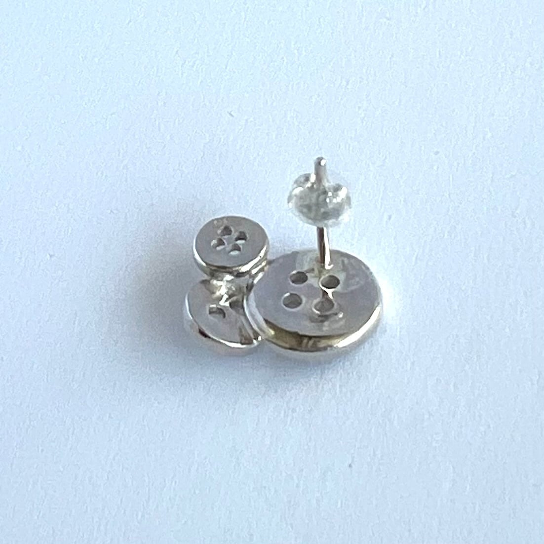 小さな釦を3個重ねたデザインピアスに仕立てました。