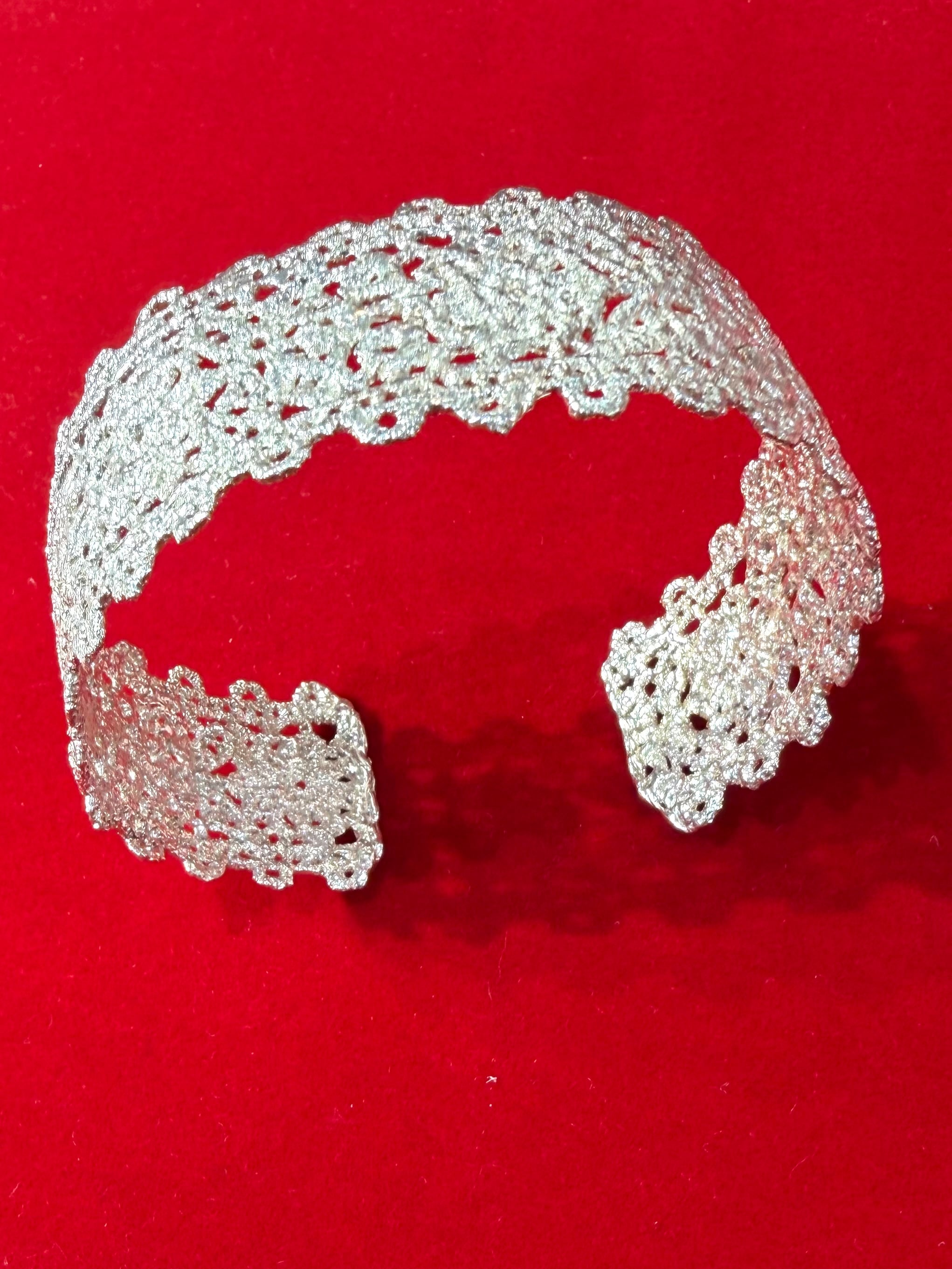 現物鋳造という手法で本物のレースを原型に使用し製作したシルバー925製のレースのバングル